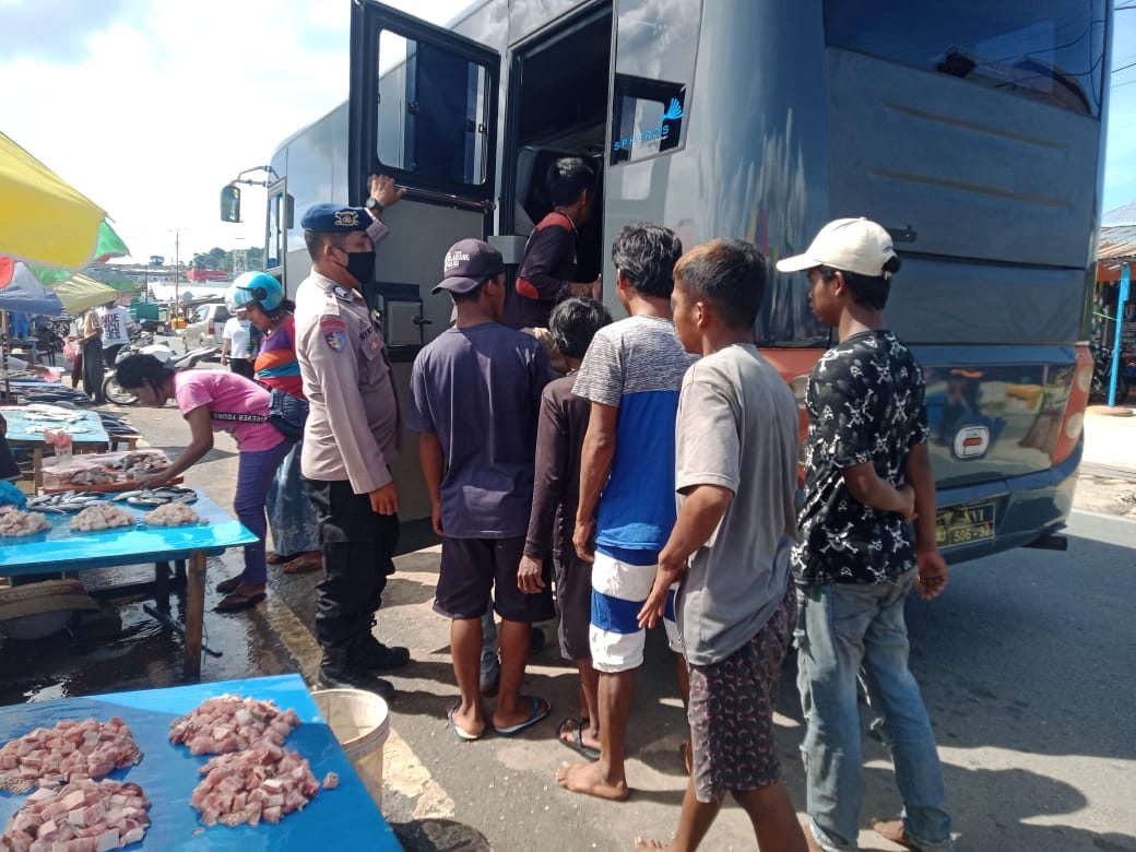 Personil Sat Polairud Polres Tanimbar dalam kegiatan ini, juga langsung memobilisasi para Nelayan Andon dengan menggunakan Bus Polres yang berjumlah sekitar 71 orang, yang belum divaksin, untuk mengikuti Vaksinasi yang digelar oleh Tim Vaksinator Polres dilokasi Swalayan Satos Saumlaki.