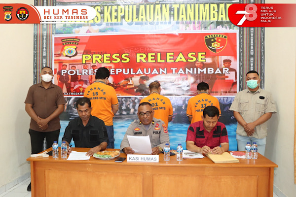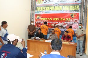 Tribratanews.polrestanimbar.com – Polda Maluku, Kepolisian Resor kepulauan Tanimbar melalui Sat Reskrim menggelar Press Release tentang Penanganan Kasus dugaan Tindak Pidana Penyelundupan Manusia, Selasa (08/08).