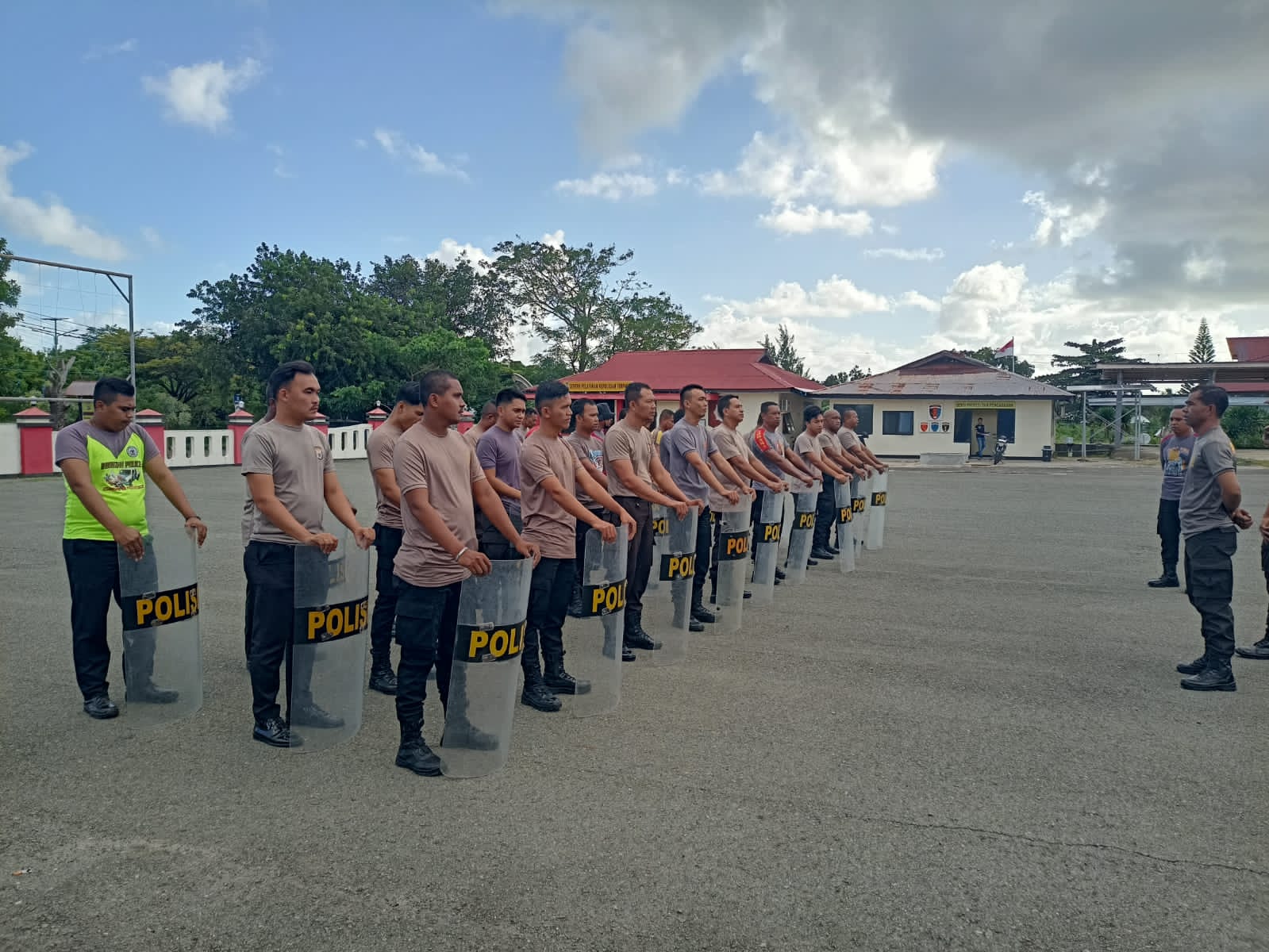 Sebelum memulai Latihan Dalmas, kegiatan diawali dengan pelaksanaan pembinaan fisik kepada Personil berupa lari menggunakan tameng serta kegiatan gerakan di tempat lainya Guna menambah dan memperkuat fisik personil.