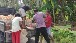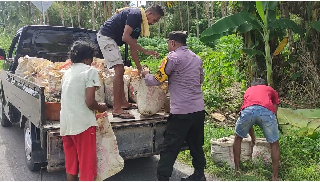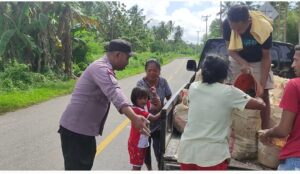 Tribratanews.polrestanimbar.com – Polda Maluku, Polres Kepuluan Tanimbar, sebagai Anggota Polri yang peduli terhadap Masyarakat, Bhabinkamtibmas Desa Sangliat Dol Bripka Denny Leatemia bantu warga yang sedang mengangkat Timbunan batu kerikil di Jalan Trans Yamdena, Desa Sangliat Dol, Kecamatan Wertamriam, Kabupaten Kepulauan Tanimbar, Senin (05/06).