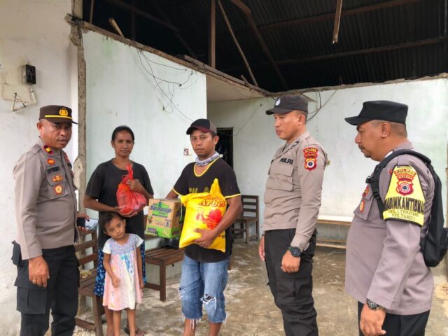 Tribratanews.polrestanimbar.com – Polda Maluku, Polres Kepulauan Tanimbar, Kapolsek Tansel Iptu Edy Weridity membagikan Bantuan Sosial Berupa Sembako Terhadap 2 (dua) Keluarga korban kerusakan Berat Pada Rumah Tinggal akibat Gempa Bumi Magnitudo 7.9 SR, di Wilayah Kecamatan Tansel Kabupaten, Kepulauan Tanimbar.