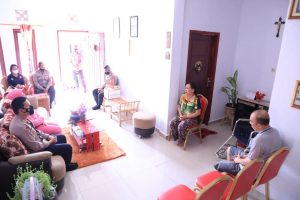 Tribratanews.polrestanimbar.com – Polda Maluku, Polres Kepulauan Tanimbar, Kapolres AKBP Umar Wijaya, S.I.K., didampingi ketua Bhayangkari cabang kepulauan Tanimbar Ny. Anjarie Umar, lakukan Anjang sana kepada personil yang sakit menahun. Jumat (08/04/2022).