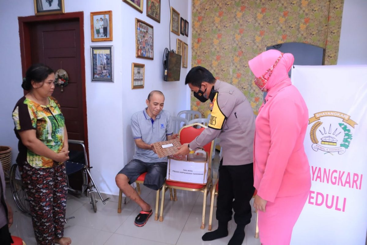Dalam kegiatan ini, Kapolres Tanimbar bersama ketua Bhayangkari memberikan talih asih kepada kedua personil dalam bentuk paket sembako dan uang tunai. Terhadap bantuan yang diberikan, Kapolres Tanimbar bersama ketua Bhayangkari menyampaikan bentuk kepedulian terhadap personilnya dengan berkunjung secara langsung ke kediaman kedua personil ini dan memberikan semangat dan dorongan untuk tetap kuat dan semangat.