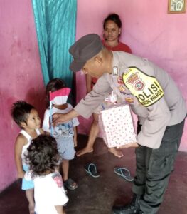 Melalui giat sambangnya, Polisi RW 04 Bripka S. F. Lakena, SH., memberikan bantuan sosial atau santunan berupa Paket Makanan yaitu Beras, Susu, Biskuit, Telor serta bahan Sembako lainnya kepada Anak Stunting yang dikunjunginya untuk membantu memenuhi gizi anak penderita stunting sehingga pertumbuhan keduanya dapat berjalan secara normal.