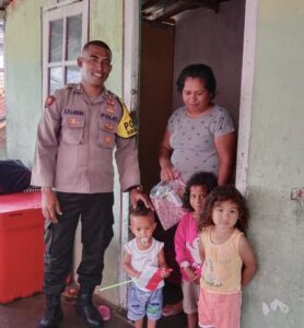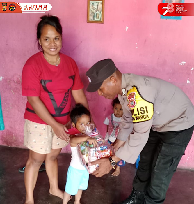 Tribratanews.polrestanimbar.com – Polda Maluku, Polres Kepuluan Tanimbar, Dengan semangat HUT Kemerdekaan Republik Indonesia ke 78 melalui giat Polri Peduli Stunting, Polisi RW 04 Bripka S. F. Lakena, SH., menyambangi serta memberikan bantuan Sosial bagi 2 (dua) Orang Anak penderita Stunting yang ada di Wilayah RW 04, Kelurahan Saumlaki, Kecamatan Tanimbar Selatan, Kabupaten Kepulauan Tanimbar, Kamis, (17/08).