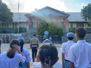 Sebagai pembina upacara, Kasat Binmas Polres Kepulauan Tanimbar pimpin upacara bendera di Sekolah