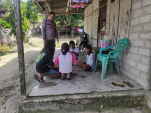 Tribratanews.polrestanimbar.com – Polda Maluku, Polres Kepulauan Tanimbar, Wujudkan Polisi Sahabat Anak, Bhabinkamtibmad Desa Sangliat Dol Bripka D. Leatemia Sambangi anak-anak yang Sedang Bermain pada Rumah milik salah satu Warga RT 02 RW 04, Desa Sangliat Dol, Kecamatan Wertamrian, Kabupaten Kepulauan Tanimbar, Rabu (03/05).