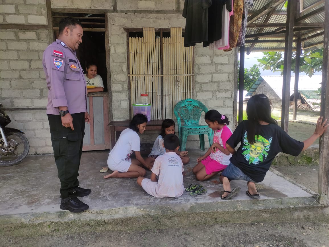 Tribratanews.polrestanimbar.com – Polda Maluku, Polres Kepulauan Tanimbar, Wujudkan Polisi Sahabat Anak, Bhabinkamtibmad Desa Sangliat Dol Bripka D. Leatemia Sambangi anak-anak yang Sedang Bermain pada Rumah milik salah satu Warga RT 02 RW 04, Desa Sangliat Dol, Kecamatan Wertamrian, Kabupaten Kepulauan Tanimbar, Rabu (03/05).