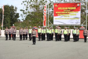 Giat Apel Gelar Pasukan Operasi Simpatik Salawaku 2023, dipimpin langsung oleh Kapolres Kepulauan Tanimbar AKBP Umar Wijaya, S.I.K., selaku Inspektur Apel yang bertempat di Lapangan Apel Mapolres Kepulauan Tanimbar.
