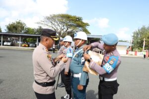 “berbagai permasalahan tersebut diantaranya adalah meningkatnya pelanggaran lalu lintas yang menyebabkan kecelakaan dan kemacetan, sehingga memerlukan upaya penanganan secara Profesional dan Komprehensif, agar tercipta ‘ Kamseltibcar Lantas sebagaimana yang diharapkan” ucap Kapolres melalui Amanat yang dibacakan.