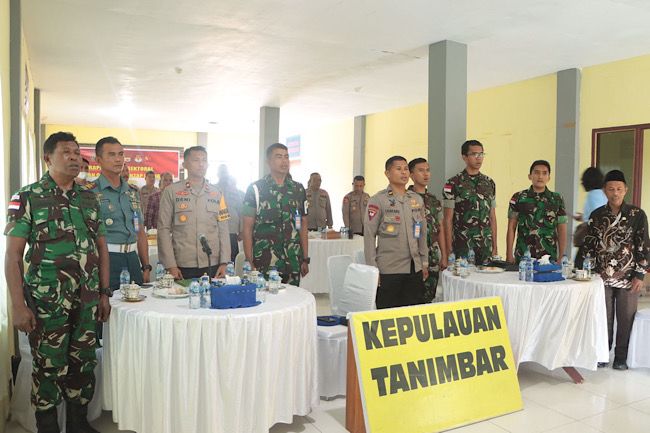 Rapat Lintas Sektoral tersebut digelar bersama dengan Forkopimda Provinsi Maluku, KPU dan Bawaslu Provinsi Maluku secara Virtual melalui Zoom Meeting, yang berlangsung Gedung Lantai II Sat Intelkam Polres Kepulauan Tanimbar, Jl. Ir. Soekarno, Kelurahan Saumlaki, Kecamatan Tanimbar Selatan, Kabupaten Kepulauan Tanimbar.