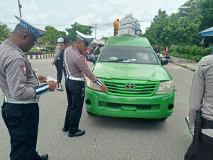 Sementara itu dalam pelaksanaan tugas Operasi tersebut, tampak Petugas gabungan Satgas Operasi memberhentikan kendaraan dari dua arah berbeda guna dilakukan pemeriksaan, baik terhadap surat maupun terkait kelengkapan kendaraan.