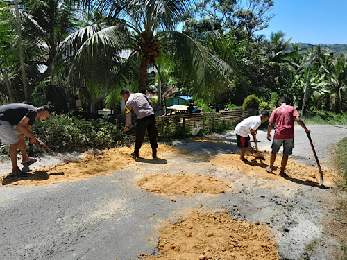 Selain itu, Bhabinkamtibmas mengarahkan dan menghimbau kepada para Pemuda bahwa kegiatan ini dilakukan demi dan untuk kepentingan bersama, sehingga pada saat memperbaiki lubang pada jalan, dilarang keras untuk meminta sumbangan dalam bentuk apapun terhadap para pengendara yang lewat.