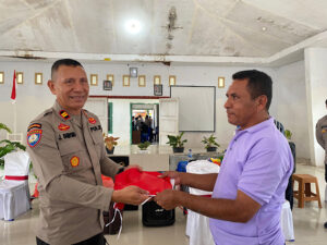Tribratanews.polrestanimbar.com – Polda Maluku, Kepolisian Resor Kepulauan Tanimbar, Dalam rangka menyemarakkan Hari Kemerdekaan Republik Indonesia ke-80 Tahun 2026, Polres Kepulaian menggelar aksi simpatik dengan membagikan bendera Merah Putih kepada Masyarakat Desa Lermatang pada, Jumat (08/08/25).