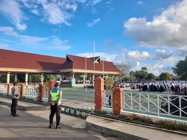 Tribratanews.polrestanimbar.com – Polda Maluku, Polres Kepulauan Tanimbar, personil Polres bersama TNI dan Brimob amankan kegiatan Sholat Ied hari raya Idul fitri 1443 hijriah / 2022 oleh Umat Muslim yang dilakukan dilapangan Mandriak dan di Masjid An’Nur Saumlaki. Senin (02/05/2022). Pukul 06.00 wit.