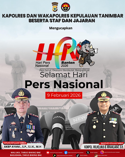 “Atas nama pribadi dan Keluarga besar Polres Kepulauan Tanimbar, Kami ucapkan Selamat Hari Pers Nasional. Semoga rekan-rekan Media terus menjadi pilar demokrasi yang sehat dan berkomitmen pada kode etik jurnalistik dengan menyajikan berita yang berimbang dan mampu menangkal penyebaran berita bohong (hoaks) yang dapat memecah belah persatuan” jelas Kapolres.