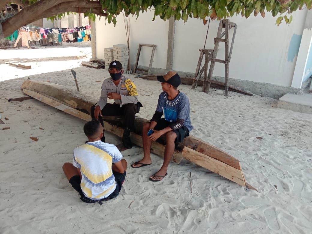 Tribratanews.polrestanimbar.com – Polda Maluku, Polres Maluku Tenggara Barat, Kamis 24 September 2020, pukul 16.30 wit bertempat di Pantai Desa Matakus Kecamatan Tanimbar Selatan Kabupaten Kepulauan Tanimbar Bhabinkamtibmas Desa Matakus Brigpol Brian Christoffel sambangi Pemuda RT.001 warga masyarakat Desa Matakus yang sementara duduk guna menyampaikan arahan tentang Edukasi, Sosialisasi dan Himbauan Pendisiplinan penerapan protokol kesehatan pencegahan Covid-19 dan Adaptasi Kebiasaan Baru