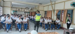 Terhadap Audience para peserta yang berjumlah sekitar 80 orang ini, Kanit Kamsel Bripka A. Layan menjelaskan tentang materi kemanan, keselamatn dan ketertiban lalu lintas (Kamseltibcar Lantas), Manfaat Santunan Jasa Raharja serta Etika Berlalu lintas.