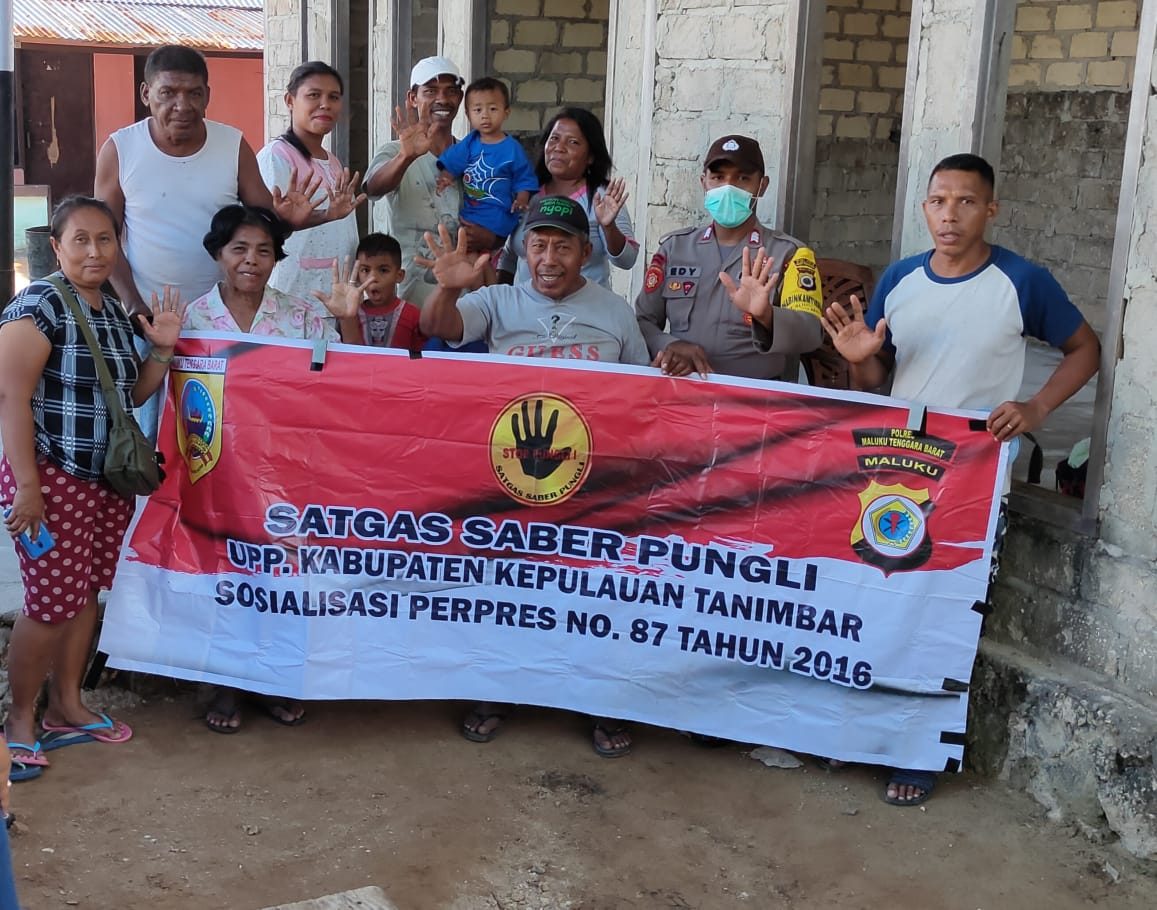 Polda Maluku, Polres Maluku Tenggara Barat – pukul 12.40 wit Brigpol E. Saklil laksanakan kegiatan Sosialisasi Materi Perpres 87 tahun 2016 tentang Satgas Saber Pungli di Desa binaannya tepatnya pada lingkungan RT.18 / RW 04 di Desa Olilit Barat Kecamatan Tanimbar Selatan Kabupaten Kepulauan Tanimbar ( Selasa / 26 / 05 / 2020 ).