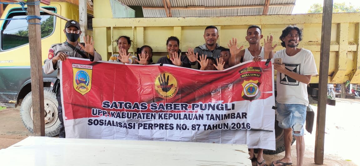 Tribratanews.polrestanimbar.com – Polda Maluku, Polres Maluku Tenggara Barat, Jumat 17 Juli 2020, pukul 14.35 Wit. bertempat di Desa Olilit Barat, Kecamatan Tanimbar Selatan, Kabupaten Kepulauan Tanimbar Bhabinkamtibmas Desa Olilit Barat Bripka Edy. F. Saklil Giat Sosialisasi Perpres Nomor 87 Tahun 2016 tentang Satgas Saber Pungli (Satuan Tugas Sapuh Bersih Pungutan Liar) Kepada Warga Rt.18/Rw.04 yang sementara duduk berkumpul di Rumah keluarga Bapak Stanislaus Watuwitak.