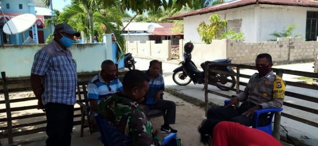 Tribratanews.polrestanimbar.com – Polda Maluku, Polres Maluku Tenggara Barat, Senin 22 Juni 2020, pukul 10.30 wit, bertempat di Desa Lauran Kecamatan Tanimbar Selatan, Kabupaten Kepulauan Tanimbar Bhabinkamtibmas Desa Lauran Bripka Yusup A. Halirat, S.H., menyambangi Pemerintah Desa Lauran yang yang sedang duduk berkumpul untuk meminta bantuan kerja sama dalam melaksanakan Sosialisasi Skenario New Normal (Tatanan Kehidupan Baru) penanganan Covid-19 kepada masyarakat.