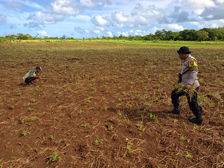 Tribratanews.polrestanimbar.com – Polda Maluku, Kepolisian Resor Kepulauan Tanimbar, Dalam menyukseskan program prioritas Pemerintah terkait Ketahanan Pangan Nasional, Bhabinkamtibmas Kelurahan Saumlaki, Bripka STEVEN KASTANYA melaksanakan kegiatan pendampingan perawatan dan pemeliharaan tanaman jagung bersama kelompok Tani lokal.