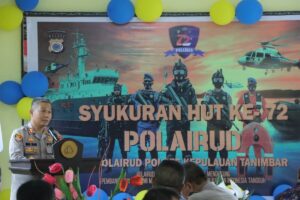 Syukuran hari ulang tahun (HUT) Korps Polairud yang ke-72 tahun 2022 kali ini, digelar dengan tema, Polairud Profesional dan aktif mendukung Pembangunan Ekonomi Maritim Nasional untuk Mewujudkan Indonesia Tangguh yang pelaksanaannya dilakukan secara sederhana oleh jajaran Korps Polairud hingga di tingkat Polres. Hal itu diungkapkan Kasat Polairud Iptu Petrus Metanila dalam kegiatan ini.