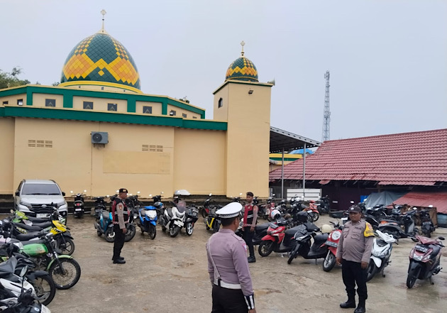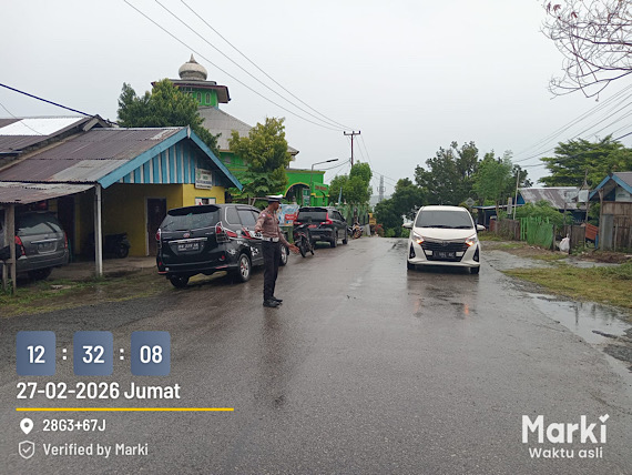 Kehadiran Polisi Lalu Lintas di tengah guyuran hujan pada, Jumat (27/02/26) siang tersebut, menjadi bentuk pelayanan prima dalam mewujudkan Keamanan, Keselamatan, Ketertiban, dan Kelancaran Lalu Lintas (Kamseltibcarlantas), serta menciptakan kondusifitas di area Masjid dan sekitarnya.