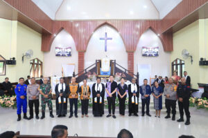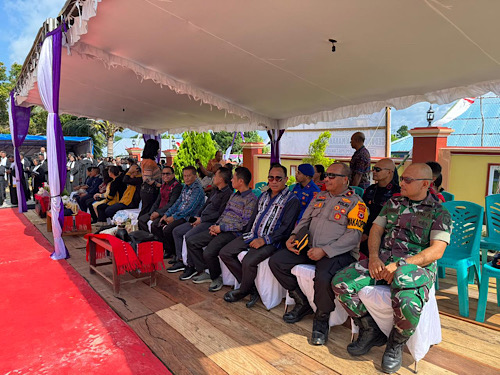 Tribratanews.polrestanimbar.com – Polda Maluku, Kepolisian Resor Kepulauan Tanimbar, Komitmen Polres Kepulauan Tanimbar dalam memelihara kerukunan umat beragama ditunjukkan dengan kehadiran Wakapolres Kepulauan Tanimbar Kompol WILHEMUS B. MINANLARAT, S.H., dalam acara peresmian dan pentahbisan Gereja Maranatha Jemaat GPM Matakus, Minggu (23/11/25).