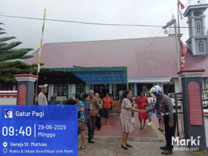 Tribratanews.polrestanimbar.com – Polda Maluku, Kepolisian Resor Kepulauan Tanimbar, Dalam menciptakan situasi kenyamanan, keamanan dan ketertiban saat Ibadah Minggu bagi Umat Kristiani berlangsung, Sat Lantas Polres Kepulauan Tanimbar gelar pengamanan (pam) dan pengaturan lalu lintas (Gatur Lalin) di sejumlah Gereja, Minggu (29/06/25).