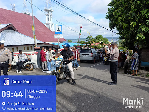 Tribratanews.polrestanimbar.com – Polda Maluku, Kepolisian Resor Kepulauan Tanimbar, Dalam upaya untuk memberikan kenyamanan dan keamanan Umat Kristiani yang sedang melaksanakan Misa maupun Ibadah di hari Minggu pada sejumlah Gereja, Personel Polres Kepulauan Tanimbar melalui Satuan Lalu Lintas aktif melaksanakan pengamanan dan pengaturan, Minggu (06/07/25).