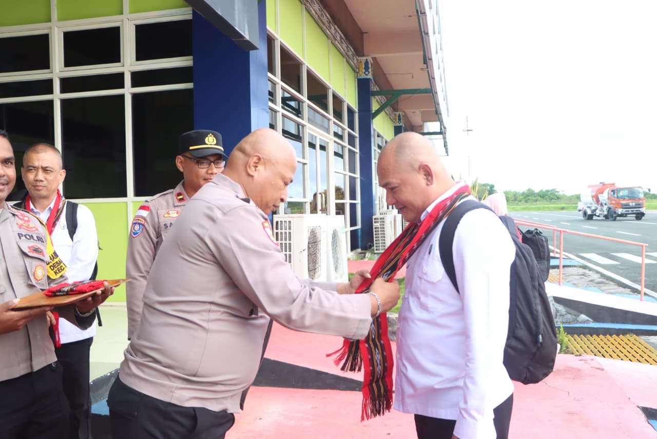 Penjemputan tersebut dilakukan langsung oleh Wakapolres Kepulauan Tanimbar, Kompol WILHEMUS B. MINANLARAT, S.H., di terminal kedatangan Bandar Udara Mathilda Batlayeri Kabupaten Kepulauan Tanimbar pada, Senin (20/04/26) pagi.