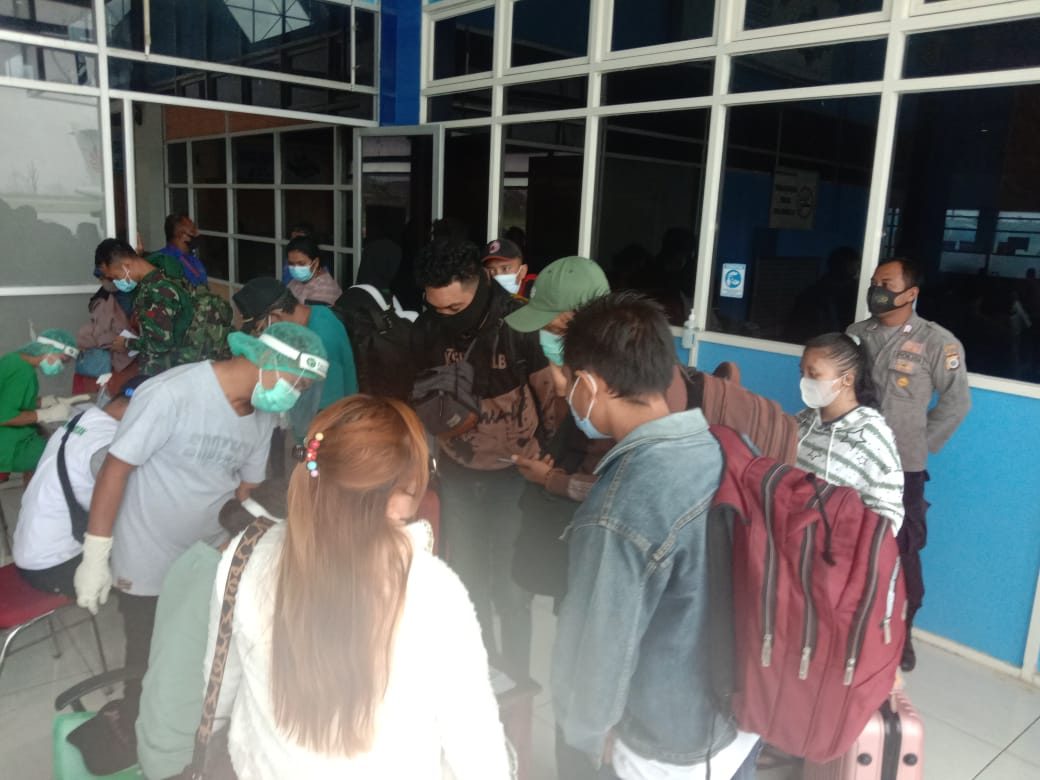 Tribratanews.polrestanimbar.com – Polda Maluku, Polres Maluku Tenggara Barat, minggu 07 Februari 2021, pukul 09.10 bertempat di Bandara Mathilda Batlayeri Kabupaten Kepulauan Tanimbar, personil Operasi Aman Nusa Tim 3 polres kepulauan Tanimbar dan personil TNI Kodim 1507 Saumlaki, melaksanakan pengamanan kedatangan pelaku perjalanan pesawat Wings Air dari Kota Ambon provinsi Maluku.