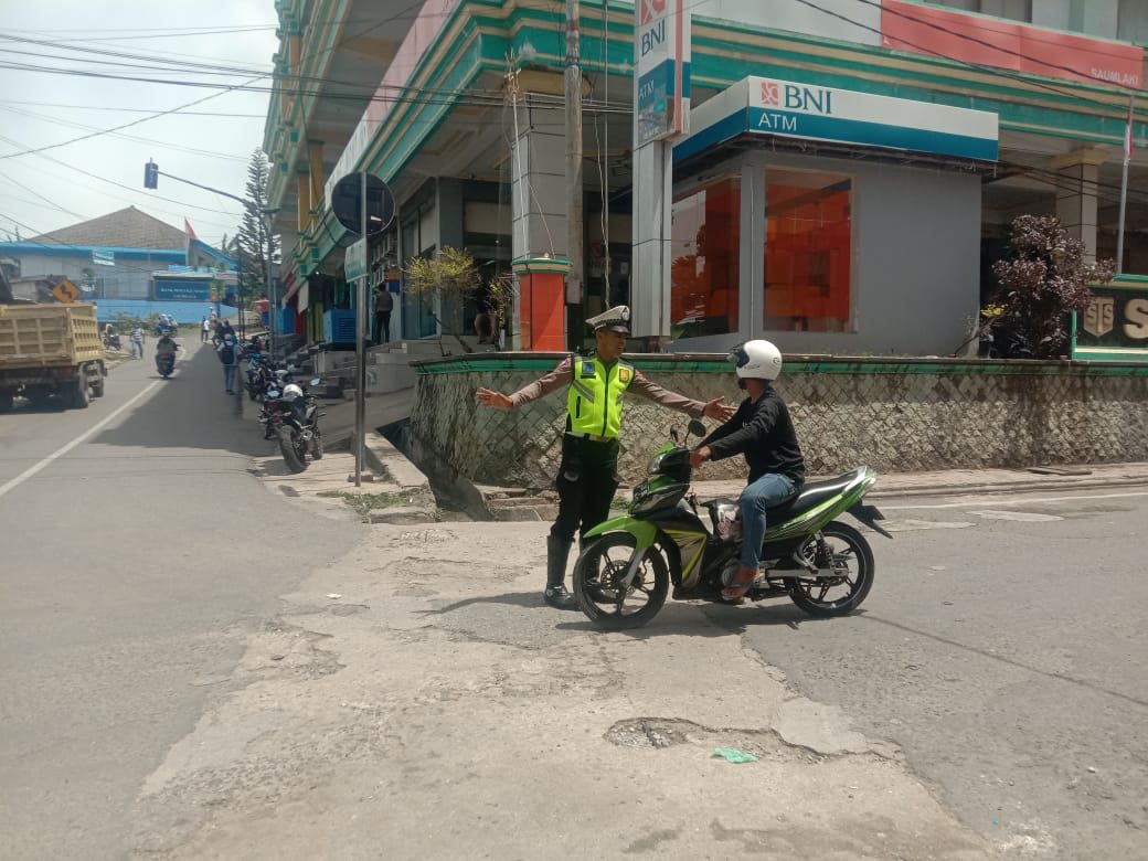 “Penjagaan Pos lalu lintas dan pengaturan lalu lintas yang dilakukan mengutamakan tindakan Preemtif dan Preventif berupa Peneguran serta imbauan kepada para Pengendara yang melanggar aturan lalu lintas”. Ungkapnya.