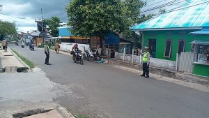 Kegiatan Penjagaan dan Pengaturan Arus Lalu lintas ini dipimpin PS. Kanit Laka Lantas Sat Lantas Bripka A. Suila bersama 3 rekannya.