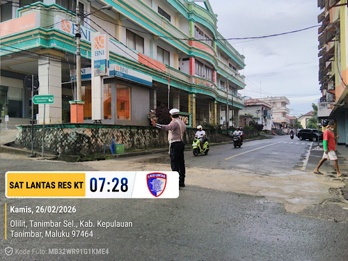 Tribratanews.polrestanimbar.com – Polda Maluku, Kepolisian Resor Kepulauan Tanimbar, Guna ciptakan situasi kenyamanan, keamanan, dan ketertiban berlalu lintas bagi Masyarakat, Sat Lantas Polres Kepulauan Tanimbar melaksanakan pengaturan Lalu Lintas di sejumlah titik strategis di wilayah Kota Saumlaki dan sekitarnya pada, Kamis (26/02/26) pagi.