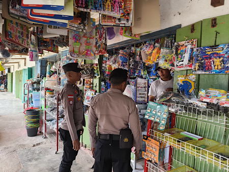Setelah dari pemukiman, Patroli berlanjut ke area Pasar Larat, Kecamatan Tanimbar Utara. Di lokasi ini, Personel terlihat memantau situasi sekaligus menyambangi para Pedagang untuk mengingatkan terkait kewaspadaan diri terhadap segala bentuk potensi kejahatan seperti pencurian, penipuan hingga peredaran uang palsu.
