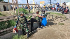 Nampak terlihat dengan penuh semangat dan penuh keakraban antara TNI-Polri bersama Pemerintah Daerah dan Stakeholder terkait bersama-sama menyusuri jalan sambil memegang kantong Pelastik serta memungut Sampah yang berada di jalanan hingga lingkungan Warga Masyarakat.