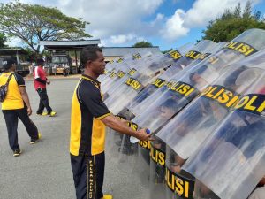 Tribratanews.polrestanimbar.com – Polda Maluku, Polres Kepulauan Tanimbar, Latihan Pengendalian Massa (Dalmas) antisipasi kontijensi dan aksi unjuk rasa kembali dilakukan personil Peleton Kerangka dan Peleton Dalmas di lapangan apel Polres. Jumat (16/09), pagi.