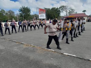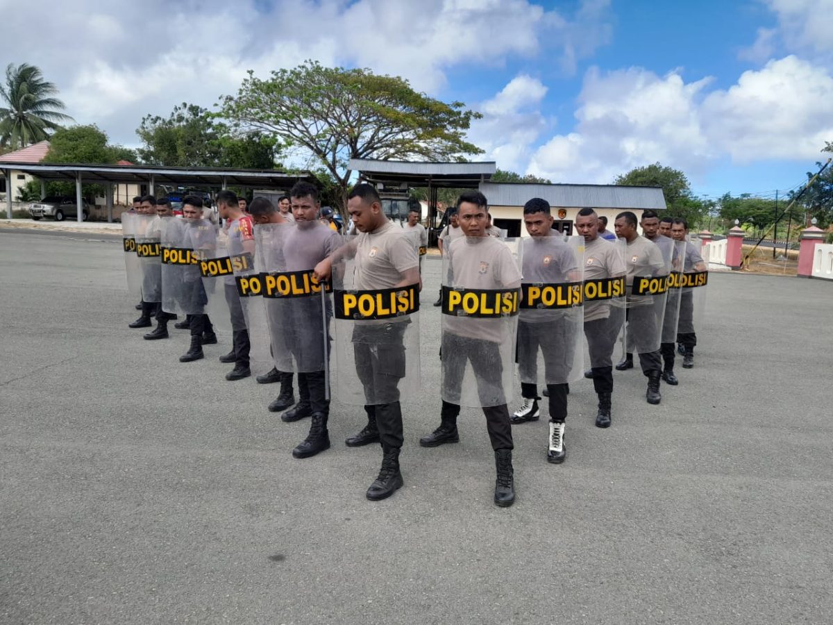 Tribratanews.polrestanimbar.com – Polda Maluku, Polres Kepulauan Tanimbar, Latihan Pengendalian Massa (Dalmas) antisipasi kontijensi dan aksi unjuk rasa kembali dilakukan personil Peleton Kerangka dan Peleton Dalmas di lapangan apel Polres. Jumat (16/09), pagi.