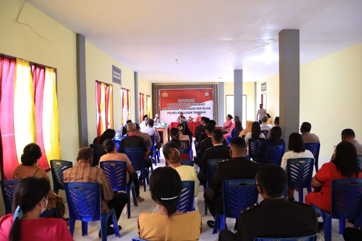 Tribratanews.polrestanimbar.com – Polda Maluku, Polres Kepulauan Tanimbar, pukul 14.30 wit, bertempat di gedung Pelayanan Publik lantai II digelar Sidang BP4R (Badan Pembantu Penasehat Perkawinan, Perceraian dan Rujuk) kepada ketujuh pasangan personil Polres Kepulauan Tanimbar. Rabu (08/12/2021).