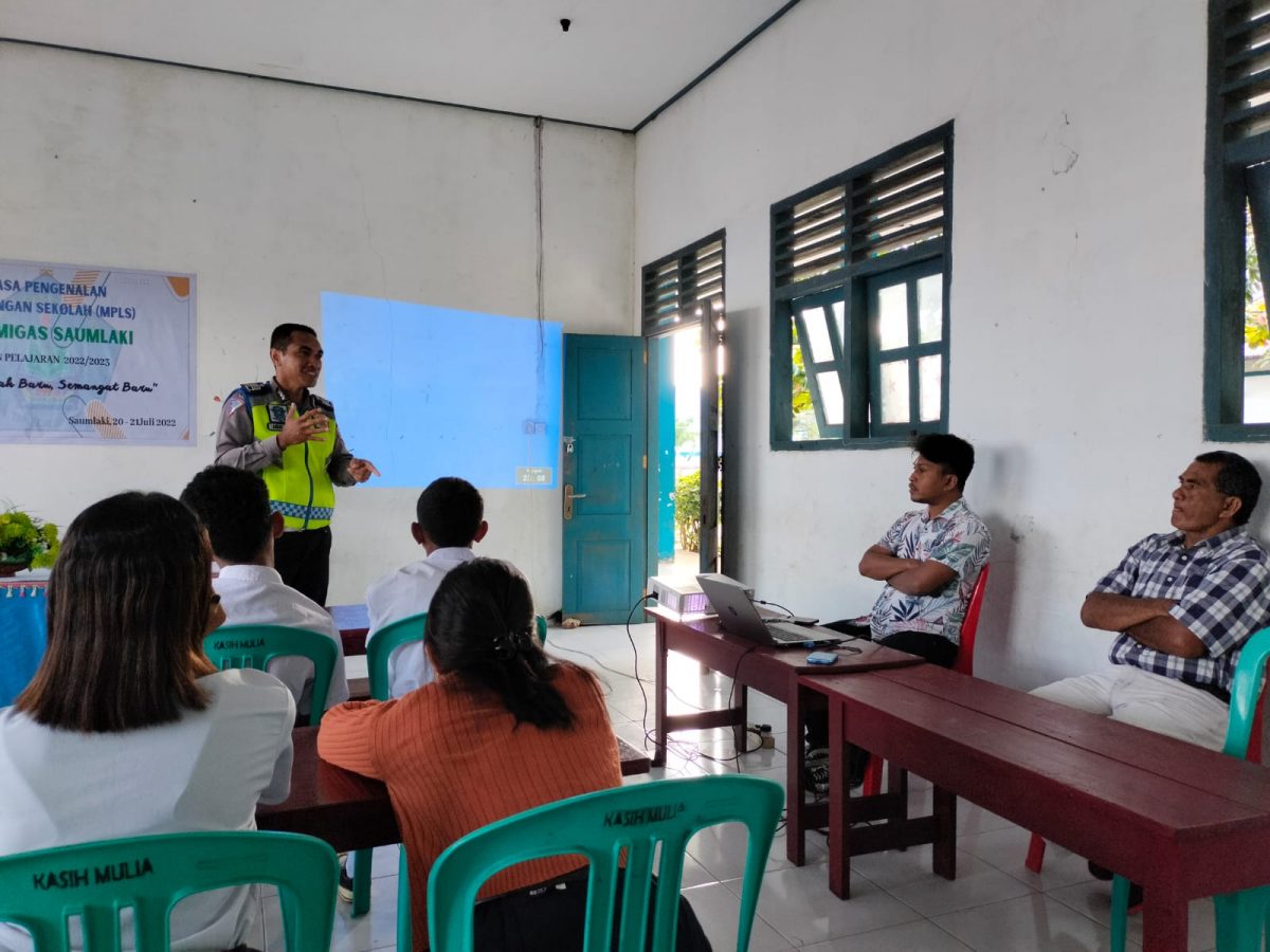 Tribratanews.polrestanimbar.com – Polda Maluku, Polres Kepulauan Tanimbar, Sosialisasi Lalu lintas dilakukan oleh unit Dikmas Sat Lantas Polres Tanimbar di SMK Migas Saumlaki. Kamis (21/07), pukul 08.00 wit.