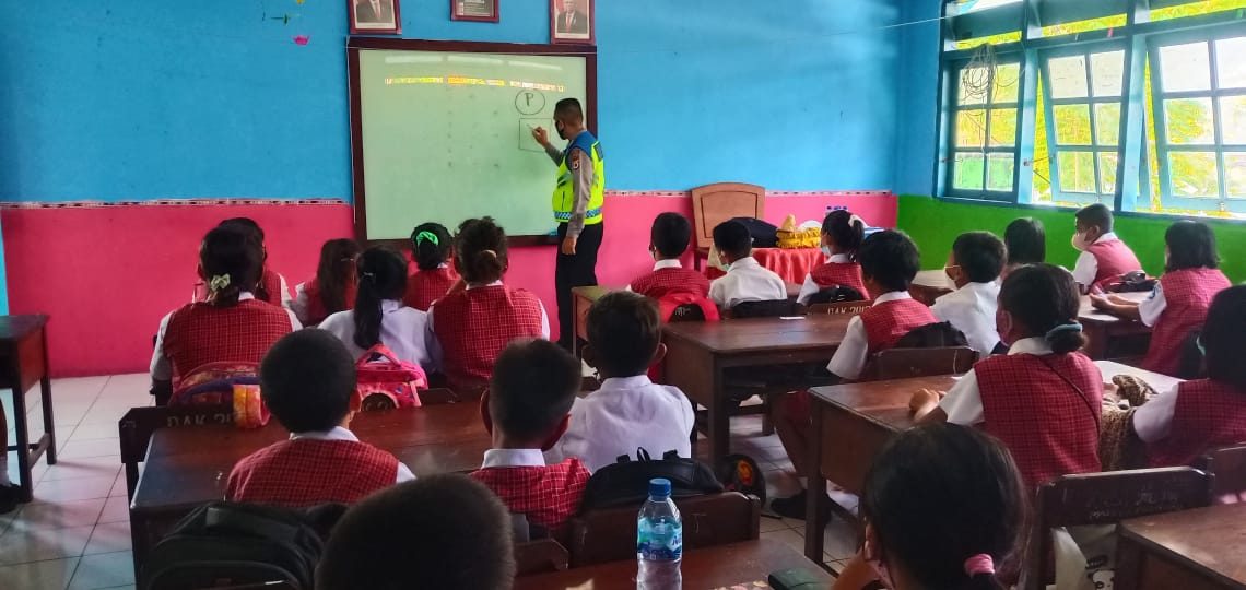 Setelah sebelumnya menggelar kegiatan yang sama di SMA. St. Lukas desa Olilit Timur pada Jumat (20/05/2022), PS. Kanit Kamsel Bripka A. Layan beserta anggotanya Bripka A. Saikmat kembali menggelar kegiatan yang sama kepada para Siswa dan Siswi di tingkat Sekolah dasar SD. Negeri 1 Saumlaki dengan materi yang disampaikan berupa, keamanan, keselamatan, ketertiban dan kelancaran Lalu lintas (Kamseltibcar Lantas), cara aman ke sekolah dan cara pengunaan helm yang baik dan benar.