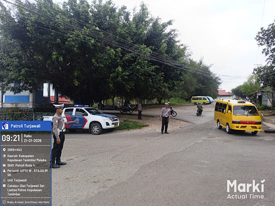 Tribratanews.polrestanimbar.com – Polda Maluku, Kepolisian Resor Kepulauan Tanimbar, Guna memberikan rasa aman bagi pengguna jalan dan mengantisipasi terjadinya kecelakaan lalu lintas, Unit Turjawali Sat Lantas Polres Kepulauan Tanimbar melaksanakan kegiatan rutin patroli dan pengaturan arus lalu lintas di sejumlah titik rawan kemacetan dan kecelakaan.