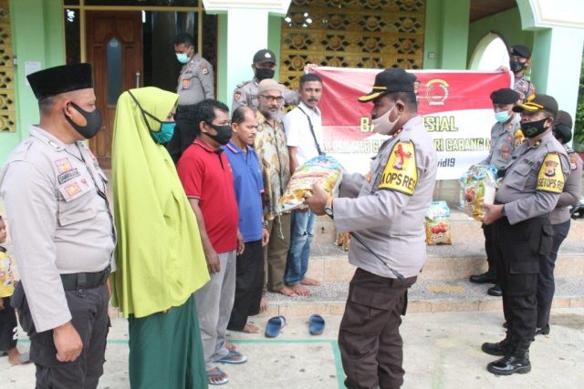 Untuk Warga Terdampak Covid-19, Polres MTB Bagikan Paket Sembako Bagi Para Penjaga Masjid