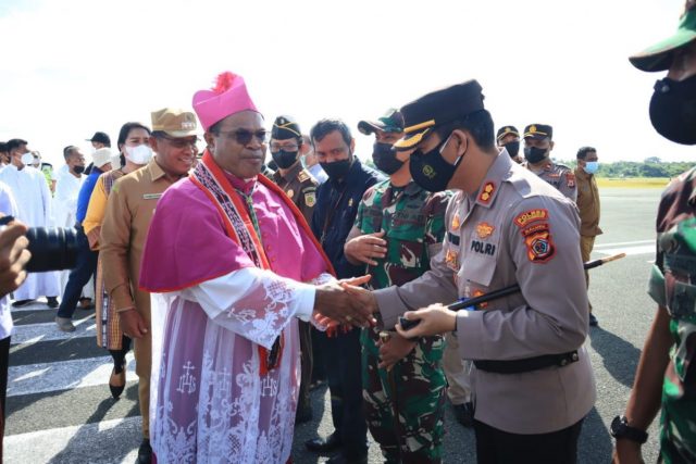 Uskup Diosis Amboina tiba di Bumi Duan Lolat, Kapolres Tanimbar bersama Forkopimda Jemput di Bandara Mathilda Batlayeri Saumlaki