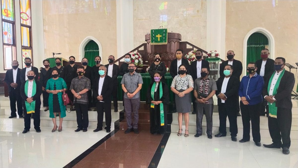 Bertindak sebagai Pemimpin Ibadah dalam kegiatan Ibadah Ny. A. Ch. A. Sabono, S.Th., dengan jumlah Jemaat yang hadir dalam Ibadah minggu sekitar 200 orang. Ibadah minggu yang dilaksanakan dengan tetap menerapkan Protokol Kesehatan Pencegahan Covid-19 kepada Jemaat yakni Jemaat yang hadir diwajibkan mencuci tangan, menggunakan Masker dan pengecekan suhu tubuh sebelum masuk ke dalam gedung Gereja serta menjaga jarak tempat duduk sambil beribadah.