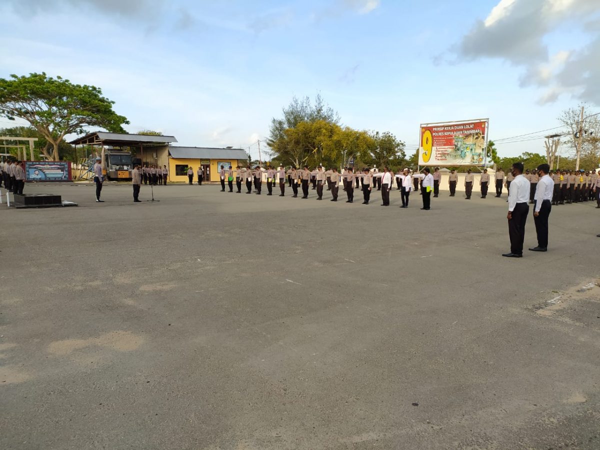 Tribratanews.polrestanimbar.com – Polda Maluku, Polres Maluku Tenggara Barat, Senin 12 Oktober 2020, pukul 07.00 wit bertempat di Lapangan Apel Polres Kepulauan Tanimbar Waka Polres Kepulauan Tanimbar Kompol Hendra Y. P. Haurissa S.H., memimpin apel Apel Pagi personil.