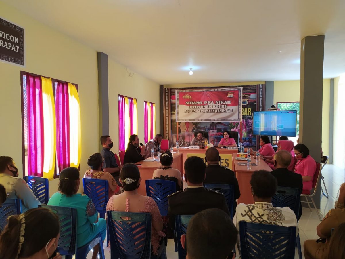 Tribratanews.polrestanimbar.com – Polda Maluku, Polres Maluku Tenggara Barat, Senin 16 November 2020, pukul 14.00 wit bertempat di lantai II ruangan Pelayanan Publik Polres Kepulauan Tanimbar, Waka Polres Kepulauan Tanimbar Kompol Hendra Y. P. Haurissa, S.H., dengan di dampingi oleh Wakil Ketua Bhayangkari Cabang Kepulauan Tanimbar Ny. Sanny Haurissa, memimpin kegiatan Sidang Pra Nikah Personil Polri Polres Kepulauan Tanimbar.
