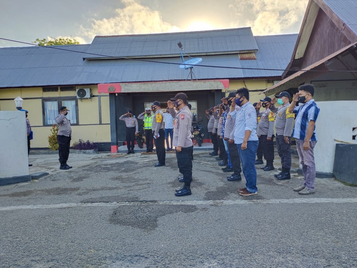 Tribratanews.polrestanimbar.com – Polda Maluku, Polres Maluku Tenggara Barat, Rabu 18 November 2020, pukul 07.00 wit, bertempat di Mako Polsek Tanimbar Selatan, Waka Polsek Tanimbar Selatan Ipda Everadus Fasse memimpin kegiatan Apel pagi personil Polsek dan berikan motifasi serta semangat kepada personil untuk tetap exis melaksanakan tugas.